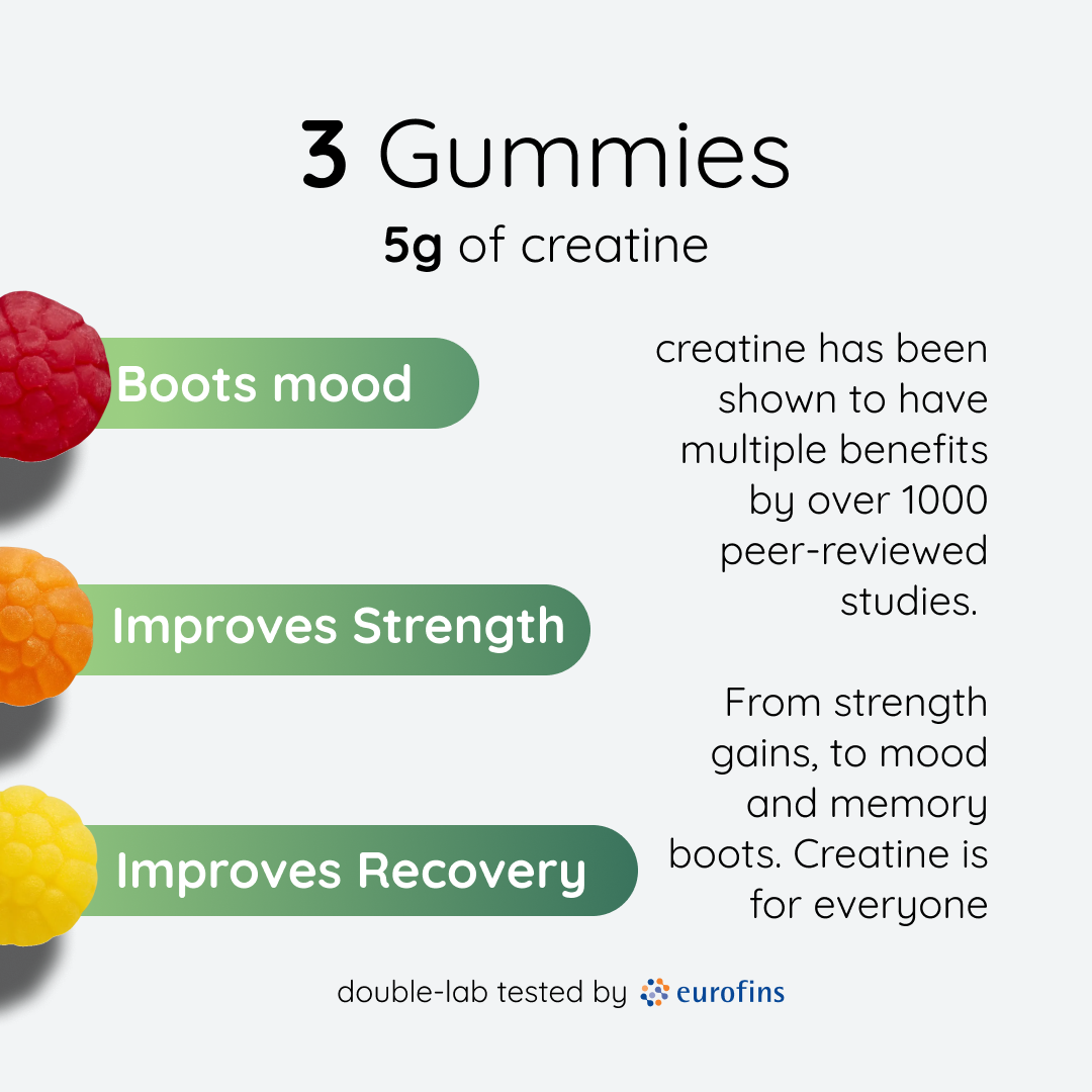So we've decided to make it tasty, easy and convenient gummy form for you to get all the Creatine Monohydrate that you need to perform at your absolute best!